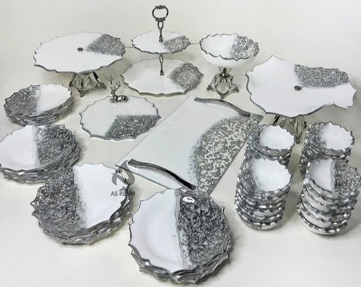 #ظرف_جهیزیه#ظرف_پذیرایی#میوه_خوری_رزینی#شکلاتخوری_رومیزی#رزین_آرتیست#آجیل_خوری_رزینی#سینی_رزینی#ظروف_سفید