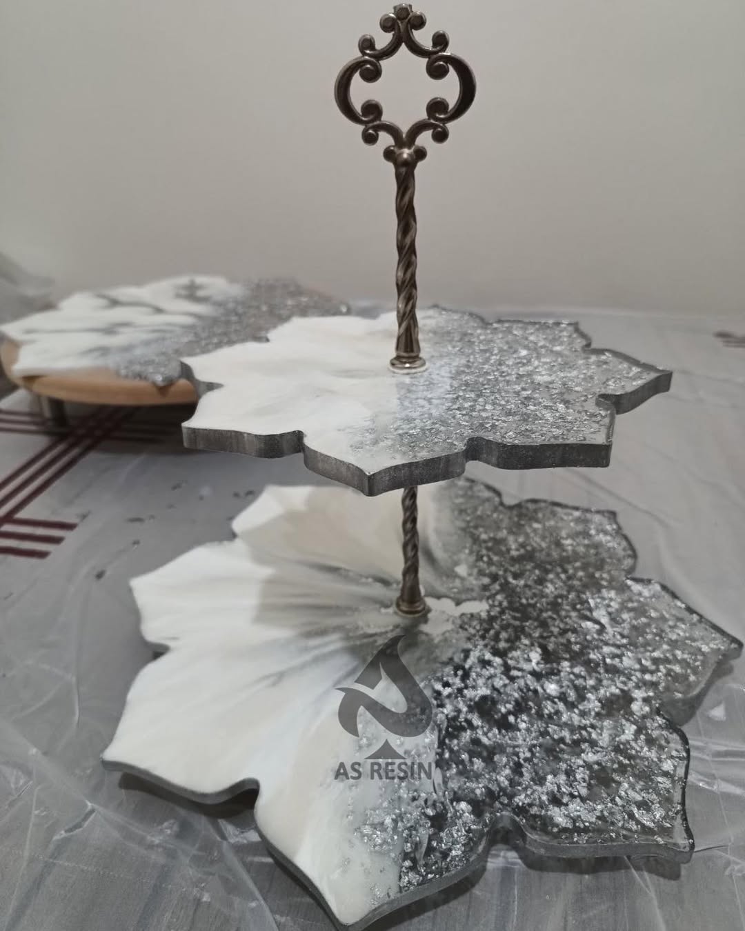 @as_resinn #بشقاب_رزینی#ظروف_رزینی#رزین_هاردنر_اپوکسی #شیرینیخوری_دوطبقه#شیرینیخوری_پایه_دار #شیرینیخوری_رزینی#ظروف_جهیزیه