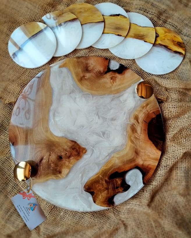 ساخته شده از چوب گردو با رزین براق محصولی با کیفیت، شیک و چشم نواز ست سینی و زیر لیوانی چوبی رزینی َبه سایز و رنگ دلخواه شما مشاوره و در و واتساپ گروه هنری صنعتی آس رزین، تولید کننده انواع محصولات رزینی، چوبی رزینی، تک نسخه و عمده اکسپلور @as_resinn