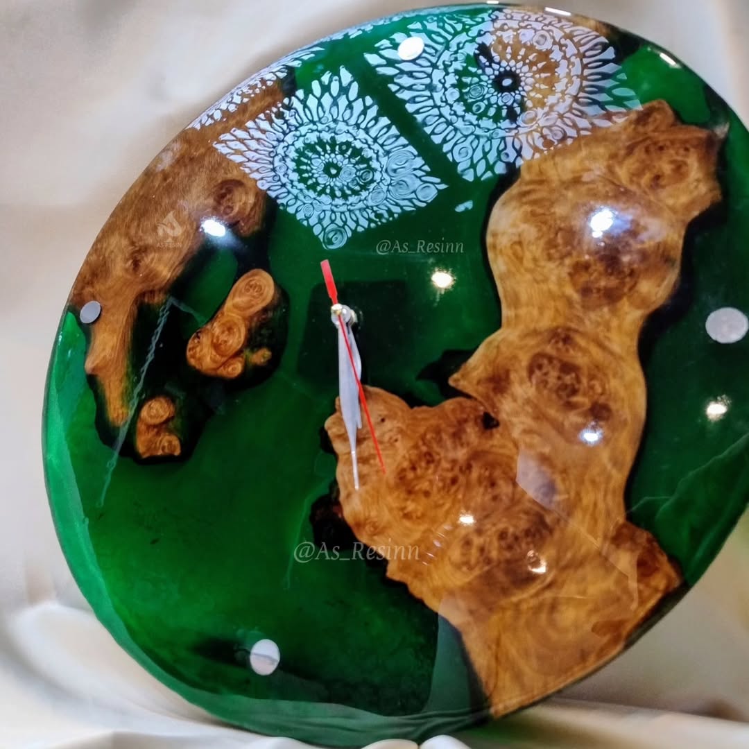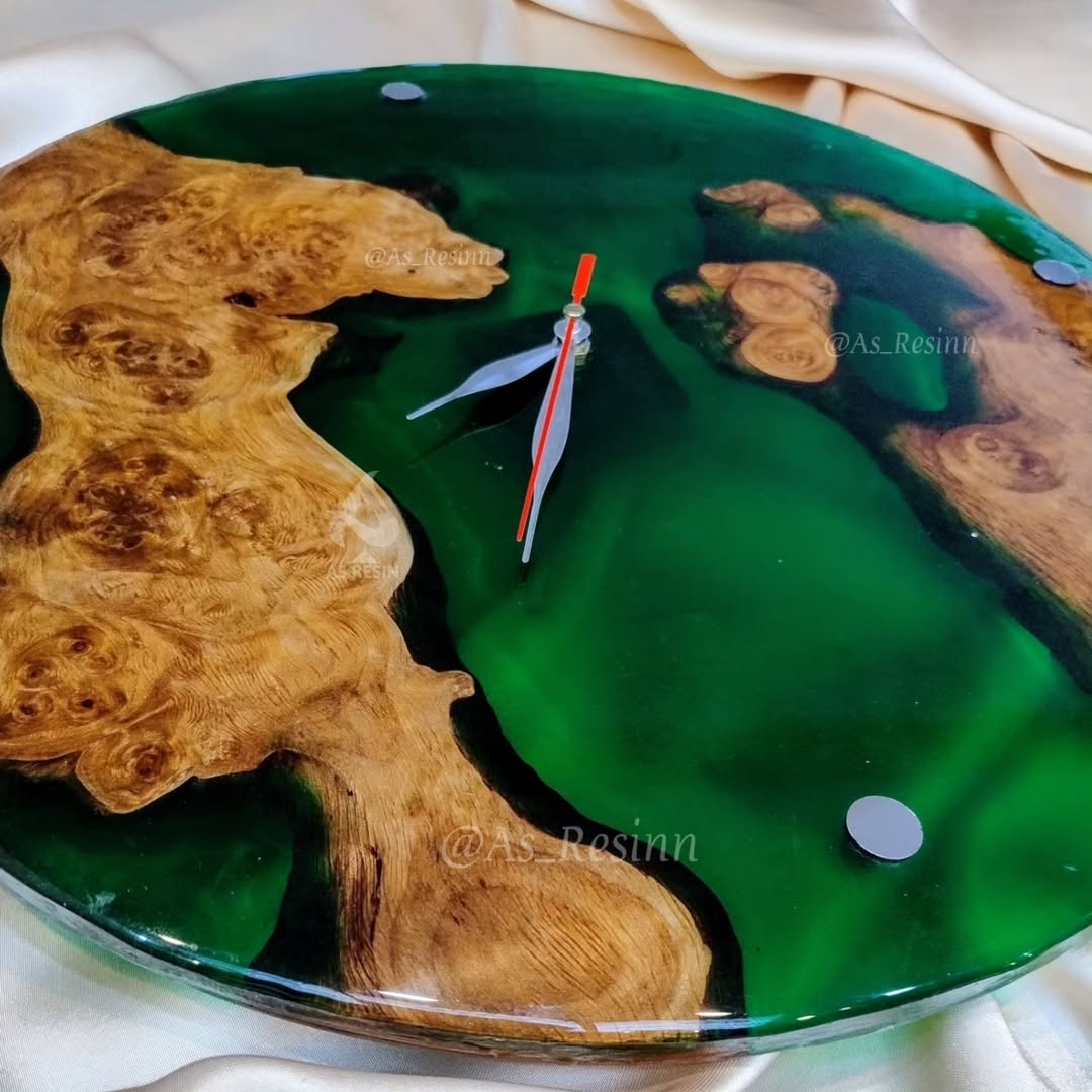 وقتی چوب طبیعی با رزین سبز عمیق ترکیب میشه، نتیجهاش میتونه یه ساعت خاص و منحصربهفرد باشه. هر جزئیات این ساعت با دقت و عشق ساخته شده. ساختهشده با عشق @as_resinn