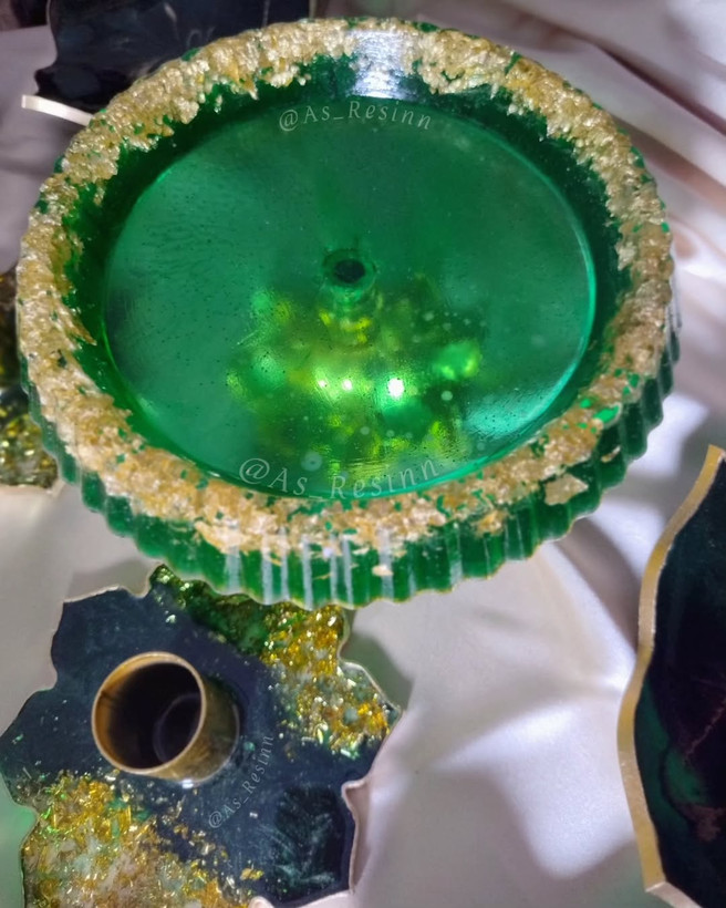 هفت سین زمرد شامل یک عدد آیینه یک جفت شمعدان ، یک عدد جای سبزه ، 6 عدد پیاله پایه دار