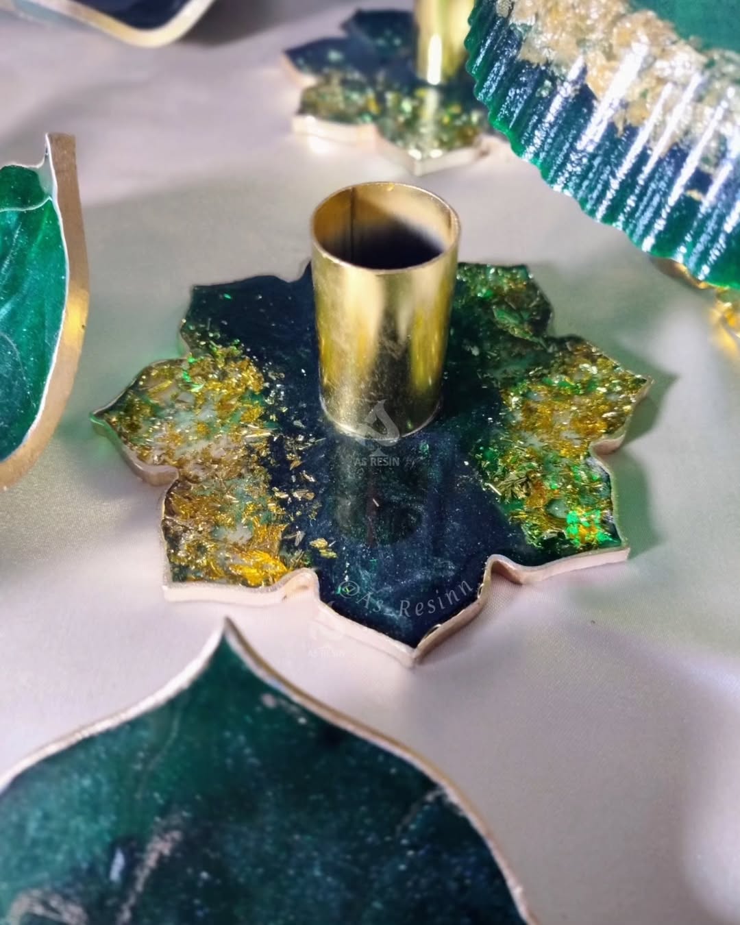 هفت سین زمرد شامل یک عدد آیینه یک جفت شمعدان ، یک عدد جای سبزه ، 6 عدد پیاله پایه دار