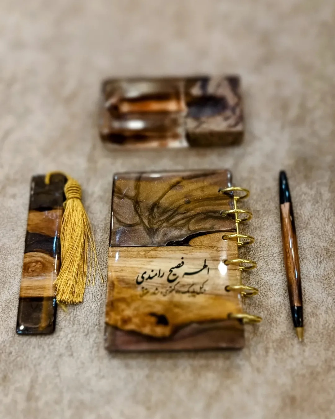 متاسفانه این کالا در حال حاضر موجود نیست. میتوانید از طریق لیست بالای صفحه، از محصولات مشابه این کالا دیدن نمایید.ست مدیریتی خاص و دستساز! ترکیبی از چوب طبیعی و رزین برای یک تجربه لوکس و ماندگار! این ست شامل: دفتر سیمی چوبی رزینی خودکار دستساز چوب و رزین بوکمارک زیبا و خاص جای کارت حرفهای و شیک مناسب برای هدیه مدیریتی، یادگاری خاص و استفاده روزمره. نظرتون درباره این طراحی چیه؟ اگر دوست داشتین، دوستانتون رو هم تگ کنید! برای سـفـــــ ــارش دایـــ ر کت بدین. @as_resinn