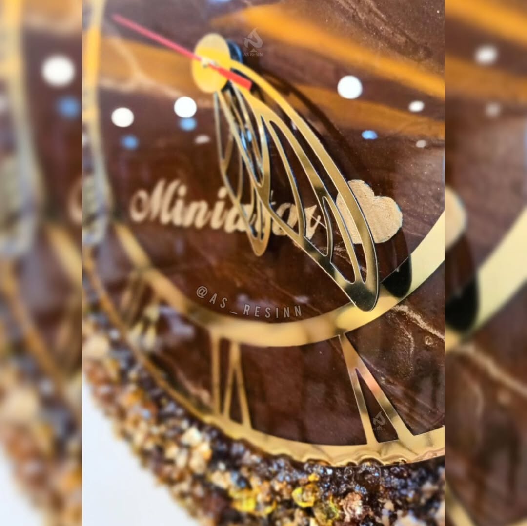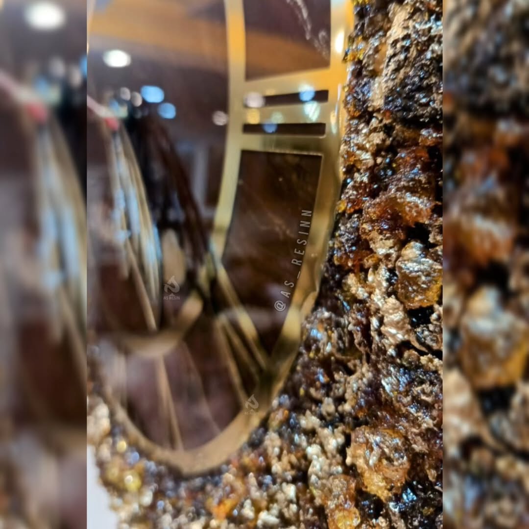 ساعت دیواری رزینی فقط بافت و ترکیب رنگشو ببین قطر : ۵۵ سانت کریستال دار با حک برند مشتری ،۴۰۰